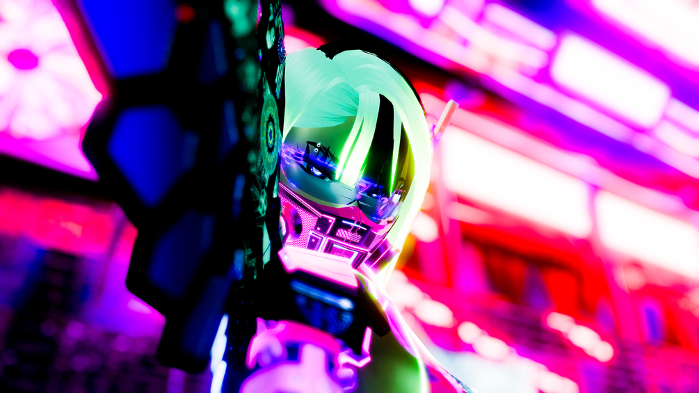 Body- Sugs#9795, Head- Sugs#9795, Curly Hair- Nessy!#7402, Short Hair- Nessy!#7402, Lashes- Nessy!#7402, Space Eye- Mowster#9962, Eye Texture- WetCat#7402, Outfit- Lolo#5454, Mechanical Legs- cherriuwu#4444, Cyber Torso- Lod#0741, Pasties- Tilly#5746, Piercings (Face, Ears and Body)- syyanide#6669, Mask- Kyushi#2500, Glasses- Milky Mommy#6969, Headphones- CD#0423, Cyborg Arm- Julie♥#7238, Wings- Riyshin#0666, Sword- InnateCandy98#6987, DPS, Shaders , Locomotion- WetCat#7402